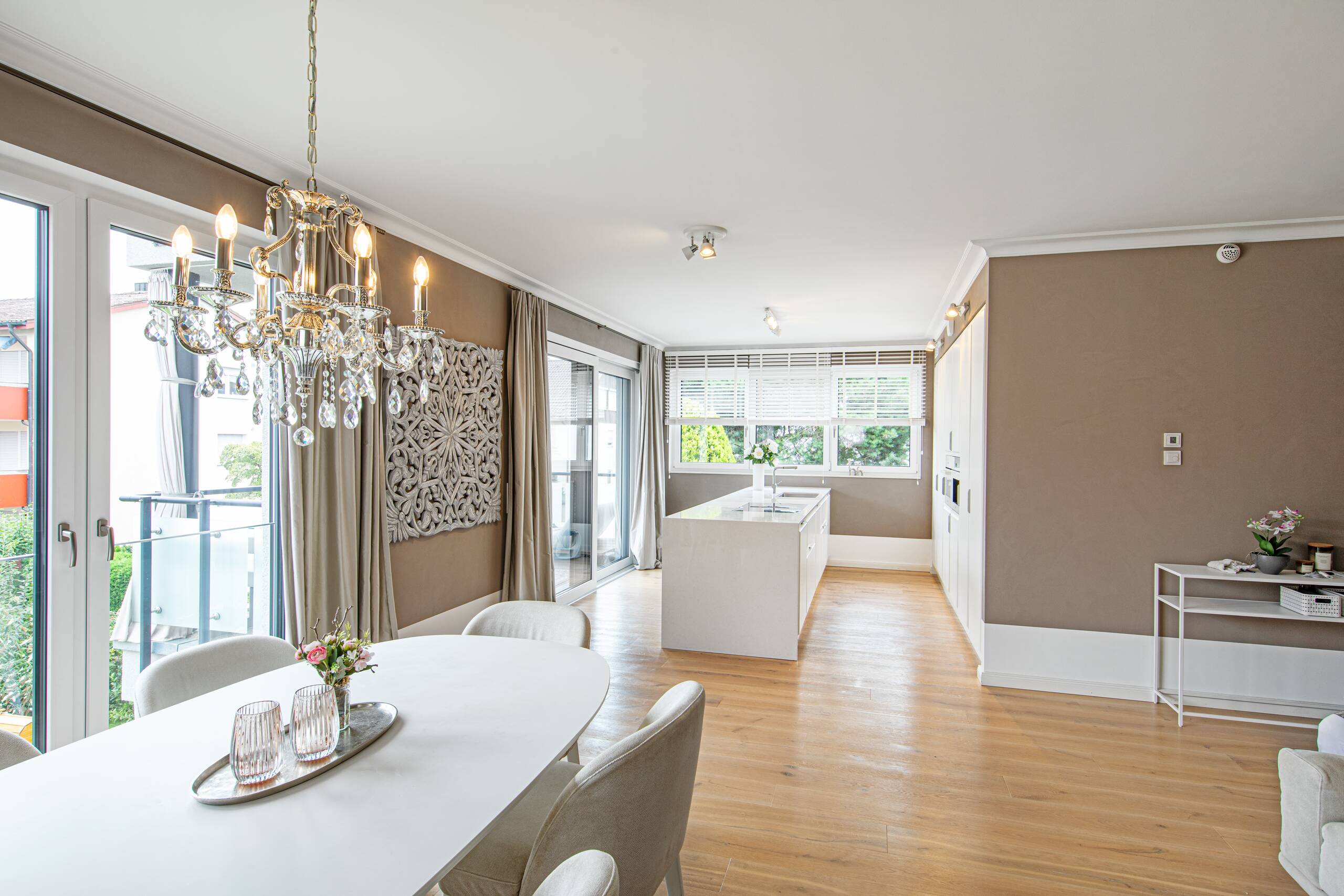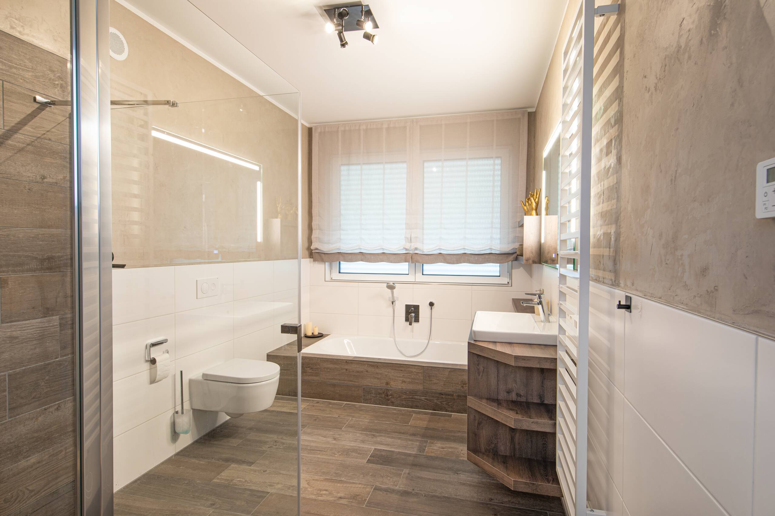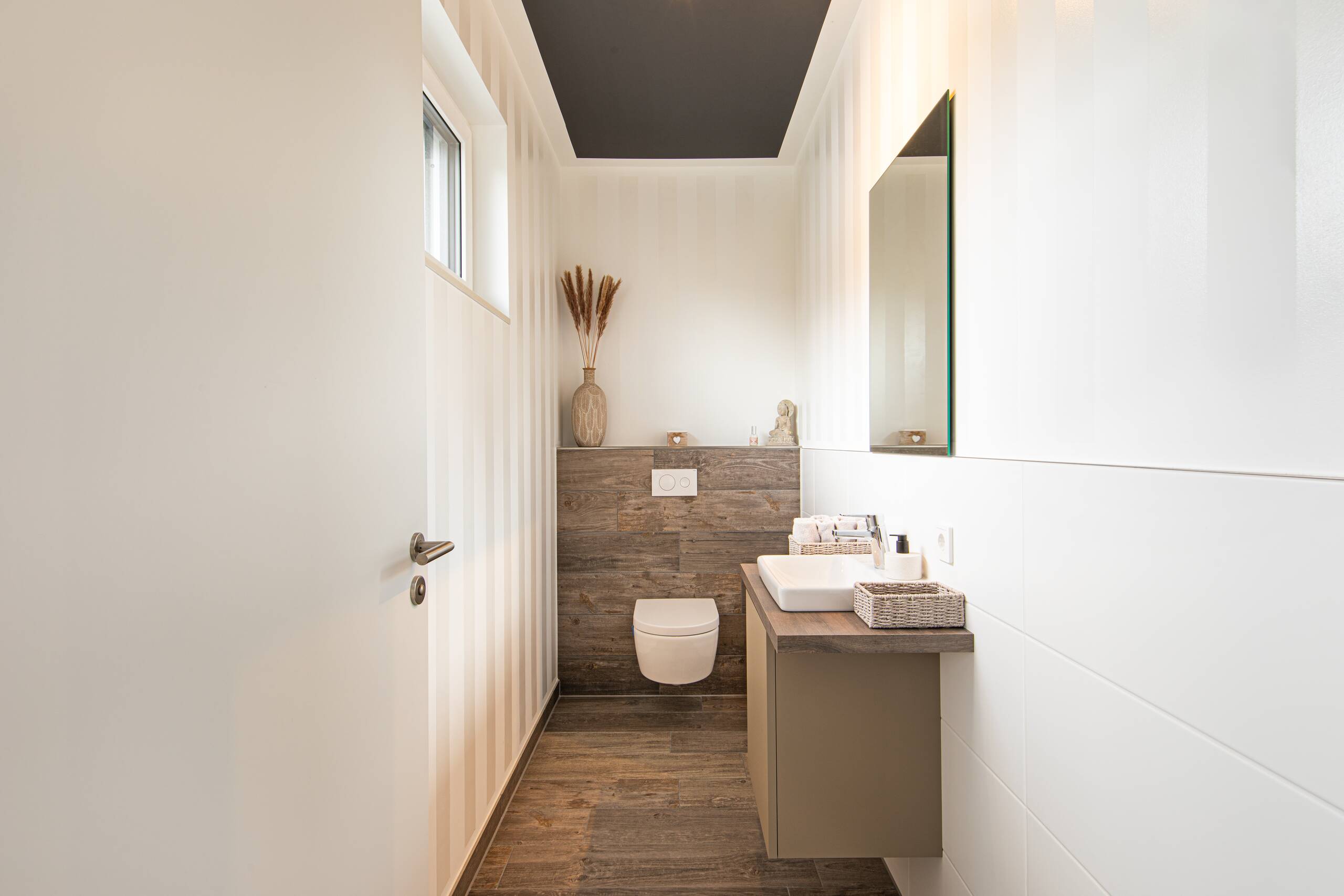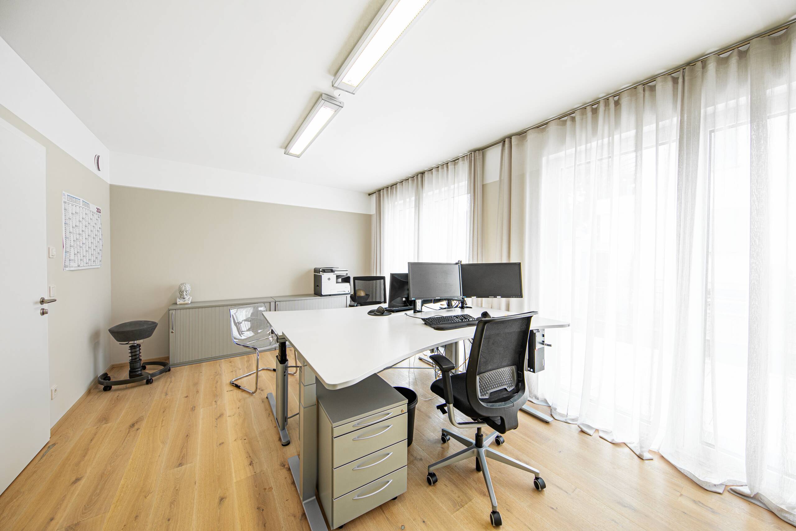 Als modernen Klassiker könnte man dieses Gebäude, welches Arbeiten und Wohnen miteinander vereint, bezeichnen: Mit der hellen Putzfassade, dem steilen Satteldach und der partiellen Holzverschalung greift es Elemente der traditionellen Architektur auf, die vorspringenden Obergeschosse und die Flachdachgauben verleihen dem Gebäude einen modernen Touch. Auf dem Dach erstreckt sich eine Photovoltaikanlage, die an einen Batteriespeicher angeschlossen ist.